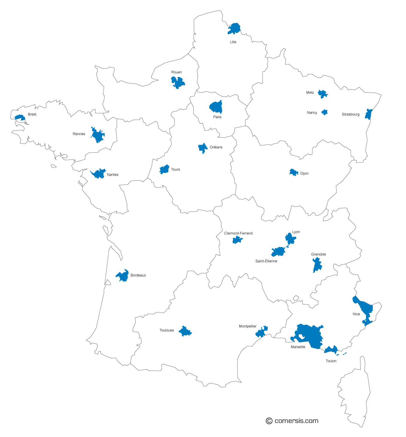 Carte de france et ses villes.